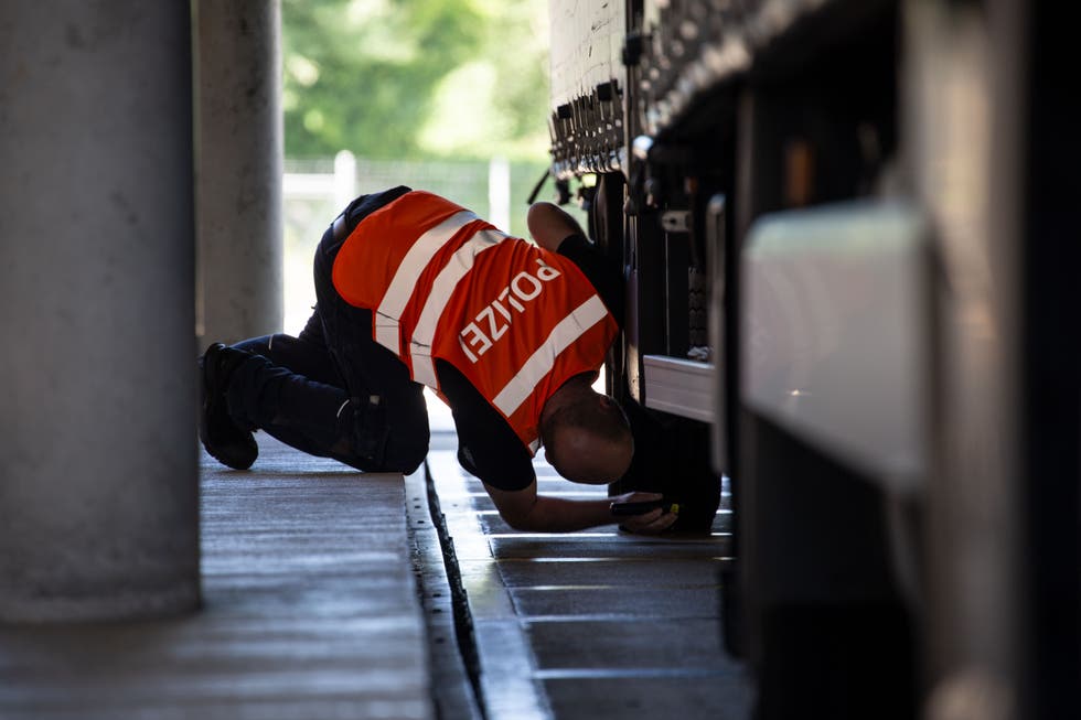 Etwas anders ist es beim Anhängerzug aus Polen, jener mit den rostenden Stossdämpfern. Nach der polizeilichen Kontrolle ist klar: Der mit Verpackungsmaterial beladene Lastwagen darf so nicht weiterfahren – er muss für eine ausführliche Inspektion in die Kontrollhalle. Der ukrainische Chauffeur klettert aus der Fahrerkabine. Er wirkt seelenruhig, als ihn die Kontrolleure über die weiteren Schritte informieren.